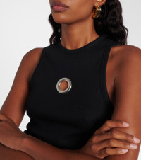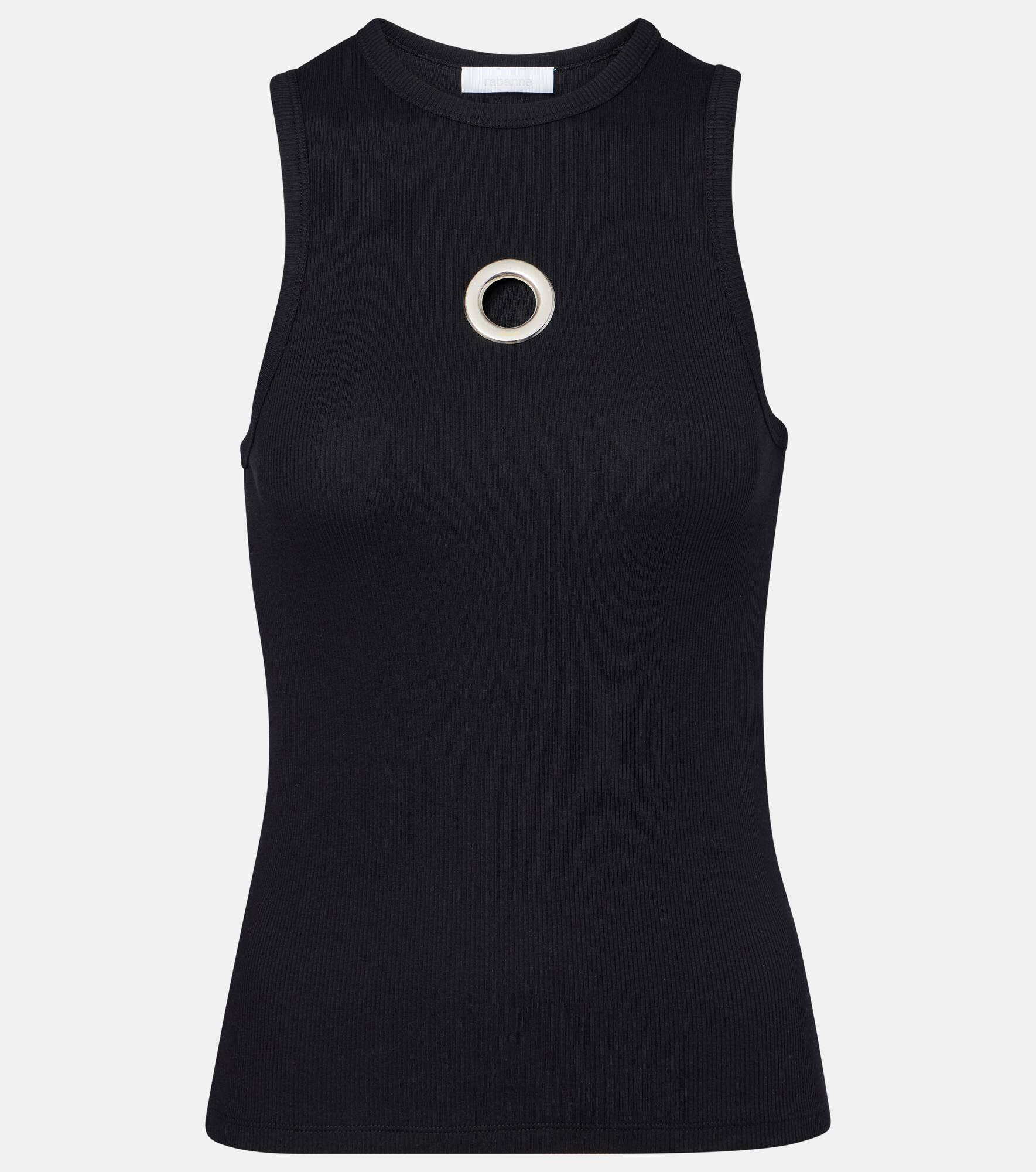 Celebrated for its glamorous designs, Rabanne’s innovative spirit continues to push boundaries. Crafted from a soft cotton blend, this sleeveless tank top features an eyelet detail at the front for a distinctive touch. Product Details - Material: 97% cotton, 3% elastane - Care instructions: hand wash - Made in Portugal - Designer color name: Black - Item color: black - Hardware color: silver - Collar: crewneck - Item number: P01092760 Size & Fit - True to size - Fitted - Stretchy fabric - Falls to the hip - The model seen in the picture is 178cm-5'10" and wearing a size XS