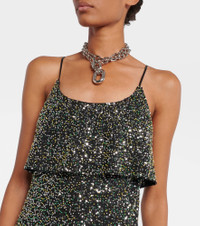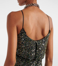 Celebrated for creating glamorous designs with unexpected materials, Rabanne’s innovative spirit continues to break boundaries. Made from crepe with sequin and bead embellishments, this slip dress has a round neckline and a gathered detail above the natural waistline. Product Details - Material: 100% polyester - Care instructions: dry clean - Made in Madagascar - Designer color name: Black - Item color: black - Lining: 100% polyester - Closure: concealed zipped side, buttoned back - Partially lined - Item number: P01092751 Size & Fit - True to size - Cinched waist - Non-stretchy fabric - Height of model is 178cm-70" and wears a size FR 36