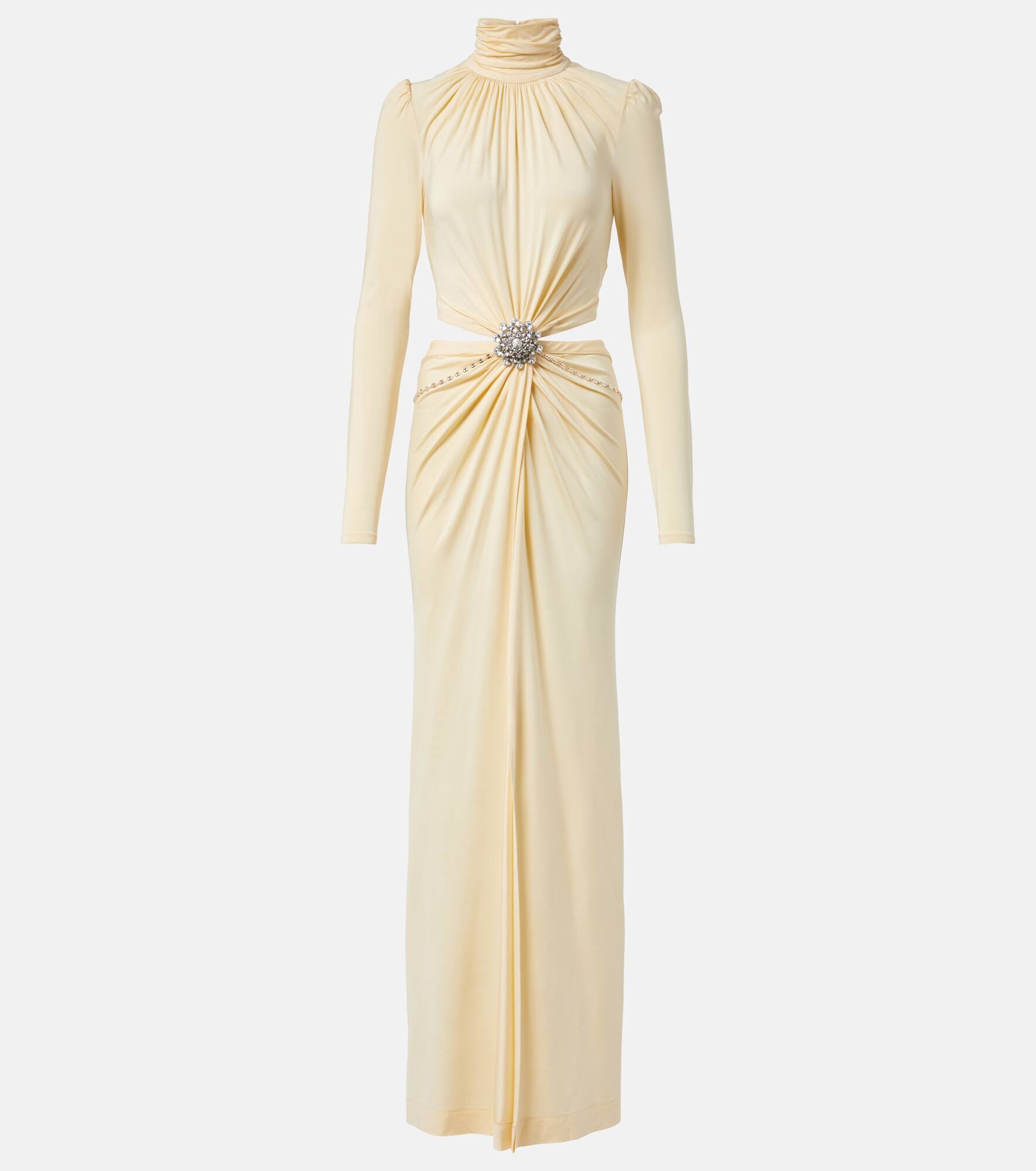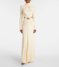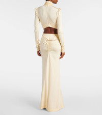 Product Details - Material: 90% viscose, 10% elastane - Care instructions: dry clean - Made in Madagascar - Designer color name: Creme Anglaise - Closure: zip and hook fastening - Sleeves: long-sleeved - Item number: P00999004 Size & Fit - True to size - Low back - Cinched waist - Stretchy fabric - slit length 68cm-27" - The model seen in the picture is 178cm-5'10" and wearing a size FR 36