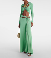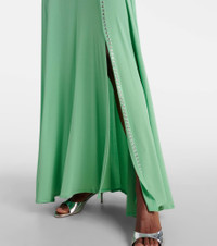 Celebrated for creating glamorous designs with unexpected materials, Rabanne’s innovative spirit continues to break boundaries. This captivating maxi skirt features sophisticated cutouts at the waistline and is embellished with silver-toned eyelets. Product Details - Material: 78% viscose, 17% polyamide, 5% elastane - Care instructions: specialist clean - Made in Tunisia - Designer color name: Pistachio - Item color: green - Hardware color: silver - Item number: P01058782 Size & Fit - True to size - Stretchy fabric - The model seen in the picture is 178cm-5'10" and wearing a size FR 34