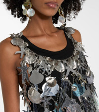 Celebrated for creating glamorous designs with unexpected materials, Rabanne’s innovative spirit continues to break boundaries. Fully embellished and equipped with detachable lining, this minidress pays homage to Paco Rabanne's heritage. Product Details - Material: 50% polyester, 50% aluminum - Care instructions: specialist clean - Made in Madagascar - Designer color name: Silver - Item color: black, silver - Lining: 98% viscose, 2% elastane - Detachable lining - Includes: dust bag - Item number: P01058780 Size & Fit - True to size - Cinched waist - Partly stretchy fabric - The model seen in the picture is 178cm-5'10" and wearing a size FR 36