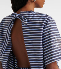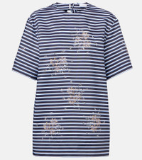 STRIPED WHITE AND BLUE EMBROIDERED TEE-SHIRT IN COTTON POPLIN