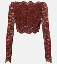 Embrace timeless elegance with this top from Rabanne. Cut from delicate floral lace, this sheer design comes with long sleeves, scalloped trims, and a cropped silhouette. Product Details - Material: 90% polyamide, 10% elastane - Care instructions: machine wash at 30 degrees - Made in Tunisia - Designer color name: Cinnamon Brown - Item color: brown - Hem: scalloped - Item number: P01092762 Size & Fit - True to size - Semi-sheer - Fitted - Slightly stretchy fabric - Cropped - The model seen in the picture is 178cm-5'10" and wearing a size FR 34