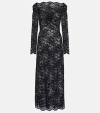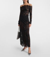 LONG BLACK LACE DRESS WITH BARDOT COLLAR
