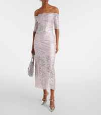 Celebrated for creating glamorous designs with unexpected materials, Rabanne’s innovative spirit continues to break boundaries. Made from floral lace with a brushed-on metallic finish, this midi skirt features scalloped trims and faux pearl buttons. Product Details - Material: 90% polyamide, 10% elastane - Care instructions: dry clean - Made in Tunisia - Designer color name: Powder Pink / Silver - Item color: pink, silver - Closure: button fastening - Item number: P01022781 Size & Fit - True to size - Slightly stretchy fabric - The model seen in the picture is 178cm-5'10" and wearing a size FR 36