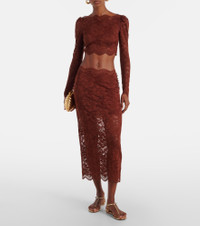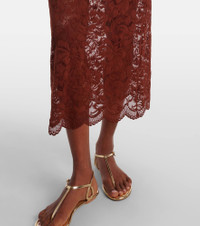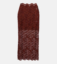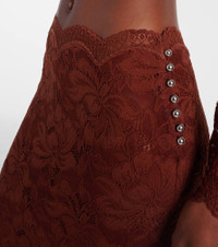 Embrace timeless elegance with this midi skirt from Rabanne. Cut from delicate floral lace, this charming design comes with partial lining, scalloped trims, and faux pearl buttons. Product Details - Material: 90% polyamide, 10% elastane - Care instructions: machine wash at 30 degrees - Made in Tunisia - Designer color name: Cinnamon Brown - Item color: brown - Hardware color: silver - Closure: button fastening - Partially lined - Hem: scalloped - Item number: P01092761 Size & Fit - True to size - Semi-sheer - Fitted - Slightly stretchy fabric - The model seen in the picture is 178cm-5'10" and wearing a size FR 34