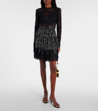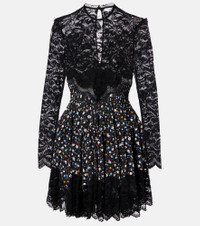 Lace-Paneled Crepe Mini Dress black