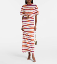 Gathered striped cotton-blend T-shirt