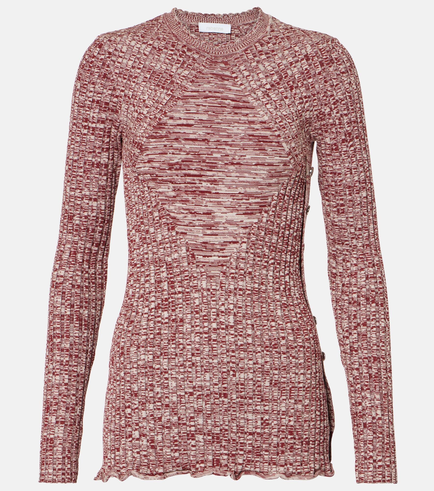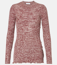 Ruffled ribbed-knit sweater Pink