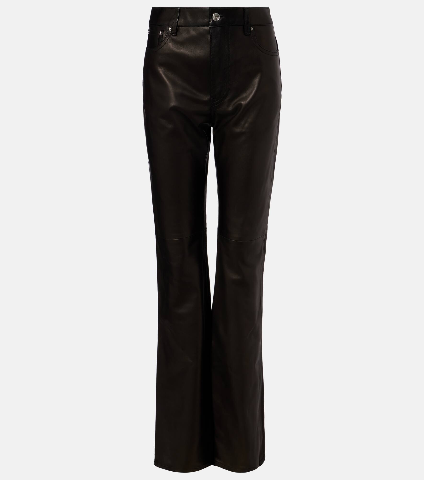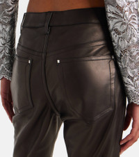 Celebrated for creating glamorous designs with unexpected materials, Rabanne’s innovative spirit continues to break boundaries. The leather flared pants feature a five-pocket design, belt loops, and a zip and button fastening. Product Details - Material: 100% lamb leather - Care instructions: specialist clean - Made in Turkey - Designer color name: Black - Item color: black - Hardware color: silver - Lining: 100% viscose - Closure: zip and button fastening - Pockets: five pockets - Belt loops - Item number: P01058777 Size & Fit - Fits small to size - we recommend trying one size larger - Non-stretchy fabric - Slim-leg with a flared hem - The model seen in the picture is 178cm-5'10" and wearing a size FR 36