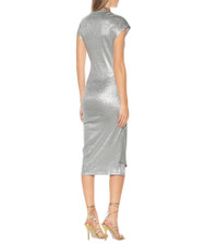 SILVER DRAPÉ PRESSION DRESS IN LUREX