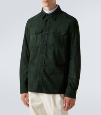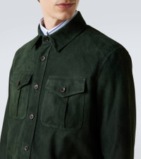 The Barron overshirt from Ralph Lauren Purple Label is the ultimate layer for transitional weather. The design is crafted from smooth suede and features two flap pockets on the chest. Product Details - Care instructions: specialist clean - Made in Italy - Designer color name: Equine Green - Item color: green - Closure: buttoned placket - Pockets: flap chest pockets - Cuff: two buttons - Item number: P01053816 Size & Fit - True to size - Straight fit - Non-stretchy fabric - Falls below the hip - Height of model is 189cm-74.5" and wears a size L