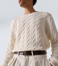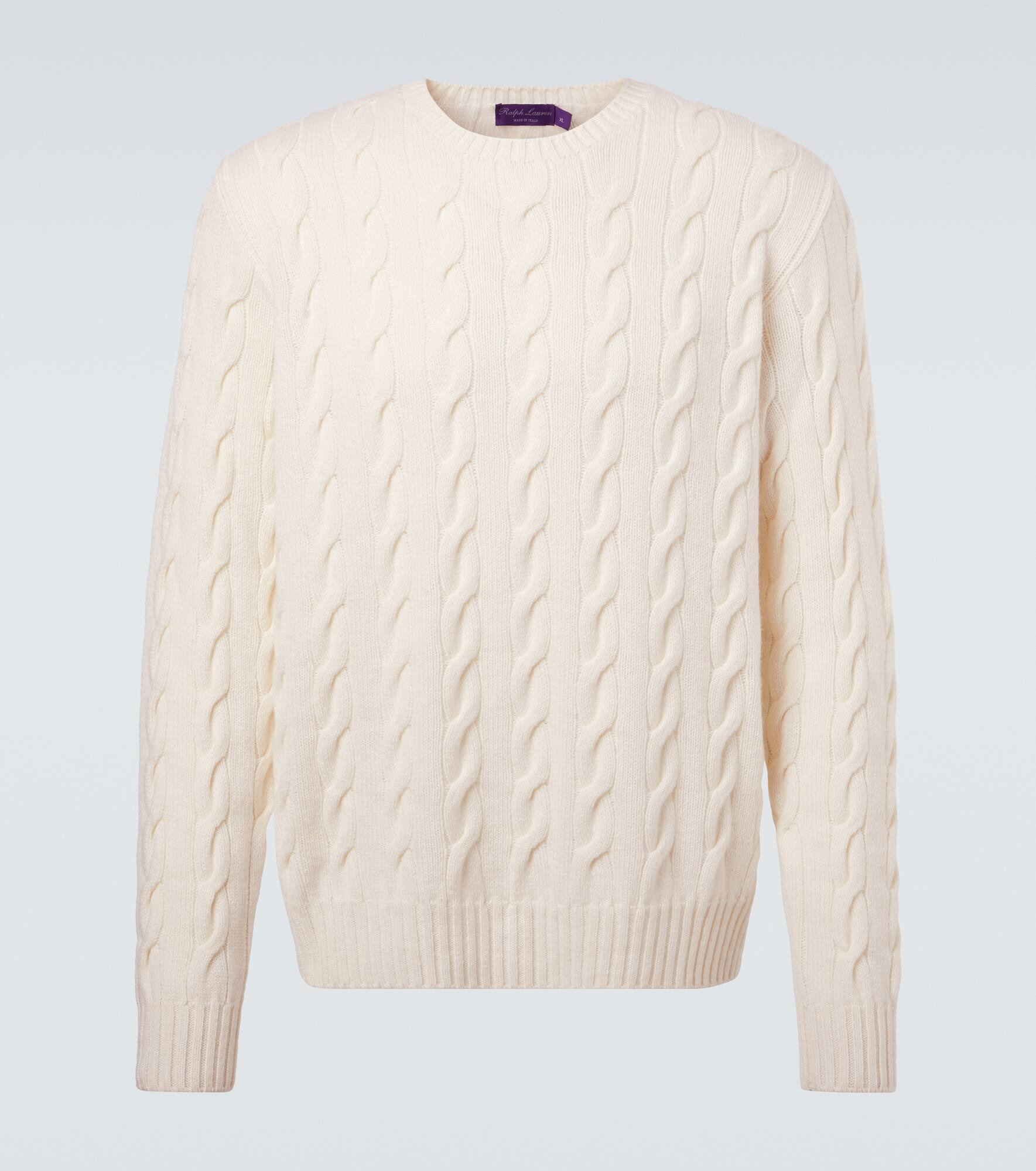 Crafted from luxurious materials, Ralph Lauren Purple Label’s elegant designs boast classic silhouettes and traditional tailoring. This classic crewneck sweater is knitted from pure cashmere yarn and features an all-over cable pattern. Product Details - Material: 100% cashmere - Care instructions: dry clean - Made in Italy - Designer color name: Classic Cream - Item color: white - Details: 100% elastane - Item number: P01053791 Size & Fit - True to size - Straight fit - Stretchy fabric - Falls to the hip - The model in the picture is 185cm-6'1" and wearing a size L