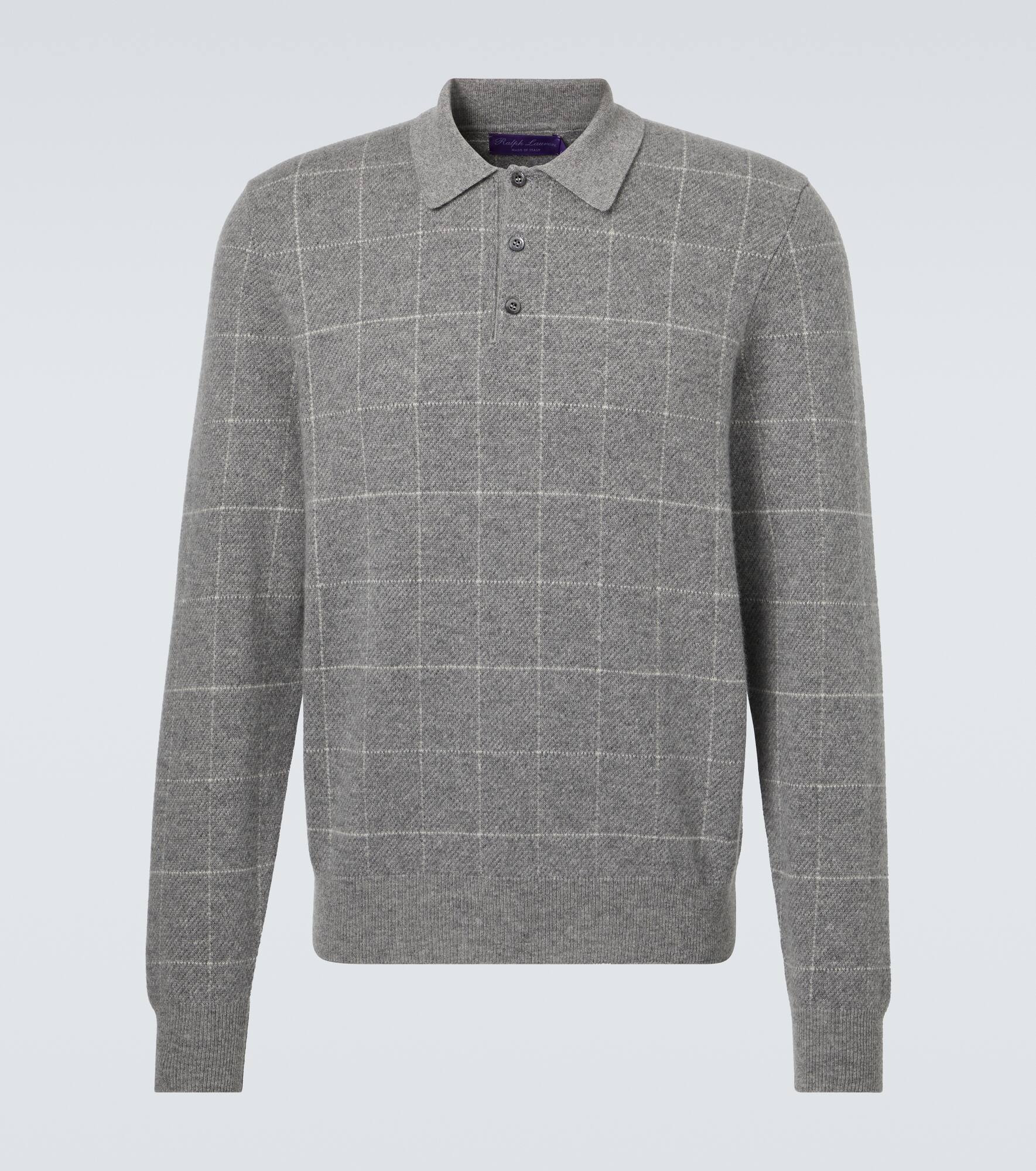 Crafted from luxurious materials, Ralph Lauren Purple Label’s elegant designs boast classic silhouettes and traditional tailoring. This polo sweater is knitted from pure cashmere yarn and features an all-over check pattern. Product Details - Material: 100% cashmere - Care instructions: dry clean - Made in Italy - Designer color name: Grey Multi - Item color: gray - Contains non-textile parts of animal origin - Collar: polo collar - Closure: partially buttoned front - Cuff: ribbed - Hem: ribbed - Item number: P01053800 Size & Fit - True to size - Straight fit - Stretchy fabric - Slightly cropped - The model in the picture is 185cm-6'1" and wearing a size L