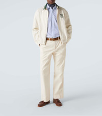 Crafted from a fine blend of cotton and cashmere, this jacket from Ralph Lauren Purple Label boast a classic bomber silhouette. This piece comes in a cream shade with contrasting green details and trims. Product Details - Material: 96% cotton, 4% cashmere - Care instructions: dry clean - Made in Italy - Designer color name: Moss Agate/Classic Cream - Item color: beige, green - Closure: zipped front - Pockets: buttoned pockets - Item number: P01053738 Size & Fit - True to size - Dropped shoulders - Designed for a loose fit - Elasticated hem - Non-stretchy fabric - Slightly cropped - Height of model is 189cm-74.5" and wears a size L