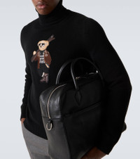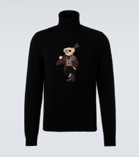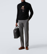 This turtleneck sweater from Ralph Lauren Purple Label is crafted from pure cashmere. The front boasts the unmistakable Polo Bear embroidery, introduced as the brand's fashionable mascot after employees gave Ralph Lauren a teddy bear that was dressed like him. Product Details - Material: 100% cashmere - Care instructions: dry clean - Made in Italy - Designer color name: Classic Black - Item color: black - Details: 28% polyester, 24% calf leather, 15% lamb leather, 13% polyurethane, 11% wool, 9% cotton - Contains non-textile parts of animal origin - Collar: turtleneck - Cuff: ribbed - Hem: ribbed - Item number: P01070246 Size & Fit - Fits small to size - we recommend trying one size larger - Close fit at the neck - Slim fit - Stretchy fabric - Falls to the hip - Height of model is 189cm-74.5" and wears a size XL
