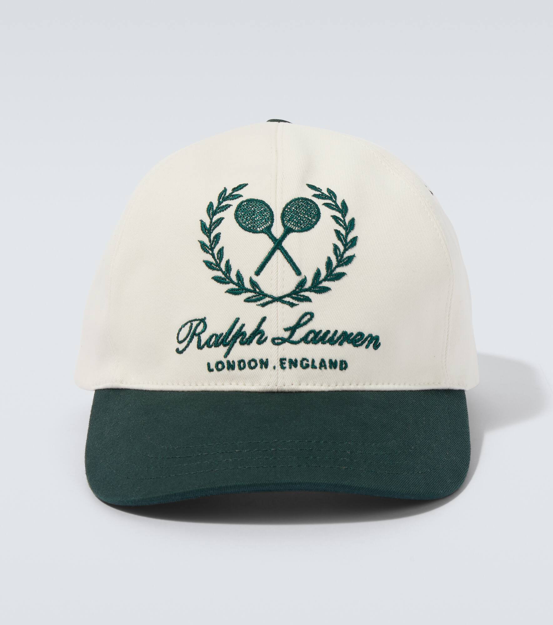 Cool accessories from Ralph Lauren Purple Label instantly level up any outfit. This baseball cap is made from cotton-blend twill with a contrasting brim. embroideries on the front, and an adjustable strap at the back. Product Details - Material: 97% cotton, 3% elastane - Care instructions: dry clean - Made in Italy - Designer color name: Classic Cream - Item color: beige, green - Lining: 100% cotton - Item number: P01053780 Size & Fit - Adjustable size - Circumference 59cm-23" - Length of visor 7cm-3"