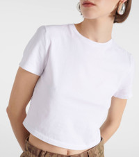 Product Details - Material: 50% cotton, 50% recycled cotton - Care instructions: machine wash cold - Made in the USA - Designer color name: White - Collar: crewneck - Item number: P00932181 Size & Fit - True to size - Cinched waist - Stretchy fabric - Cropped - The model seen in the picture is 178cm-5'10" and wearing a size XS