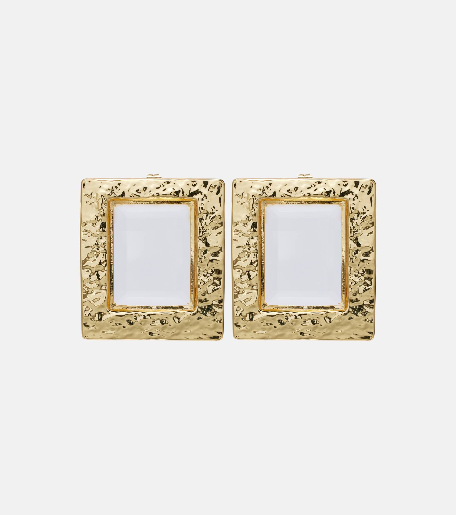 Every accessory from Rebecca Vallance is characterized by glitz and glamour, and these 18kt gold-plated earrings are no exception. The design boasts a sophisticated square shape and is finished with a butterfly-back fastening. Product Details - Material: 18kt gold-plated brass, glass - Made in China - Item color: gold - Closure: butterfly-back fastening - Includes: box, dust bag - Item number: P01106897 Size & Fit - Length 4cm-1.5" - Width 3,5cm-1.5"