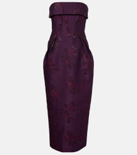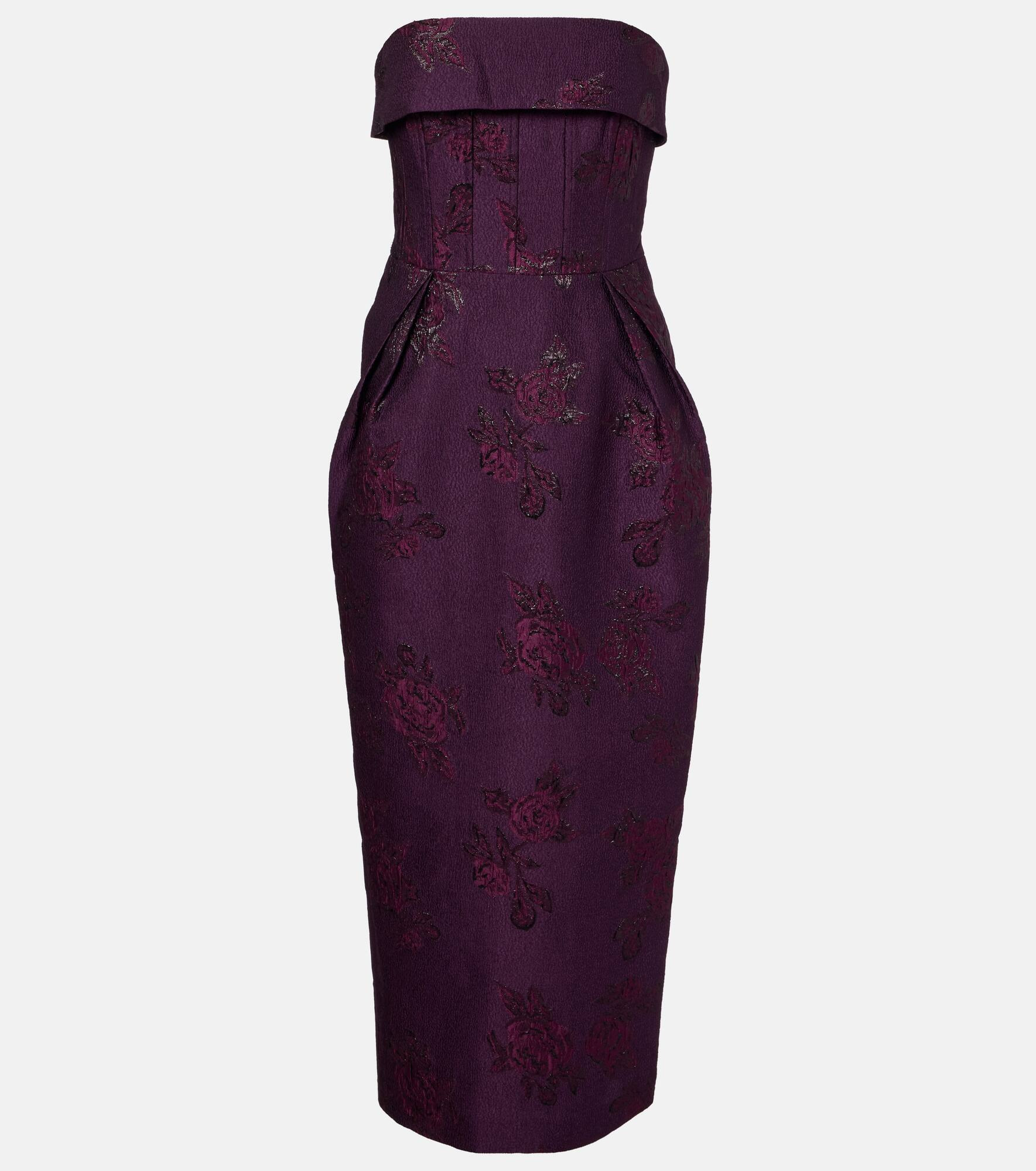 strapless floral-brocade midi dress