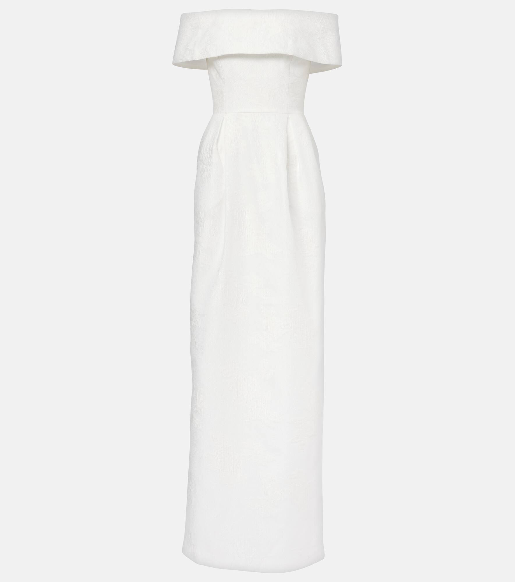 Product Details - Material: 68% polyester, 28% linen, 4% metallic fibres - Care instructions: dry clean - Made in China - Designer color name: Ivory - Item color: ivory - Item number: P01039768 Size & Fit - True to size - Off-the-shoulder - Internal boned corset for support - Cinched waist - slit length 67.0cm-26.5" - The model seen in the picture is 178cm-5'10" and wearing a size UK 6