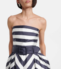 Product Details - Material: 100% polyester - Care instructions: dry clean - Made in China - Designer color name: Navy/Ivory Stripe - Item color: blue, white - Detachable belt - Closure: zipped back - Item number: P01042179 Size & Fit - True to size - Strapless - Cinched waist - Non-stretchy fabric - The model seen in the picture is 178cm-5'10" and wearing a size UK 6