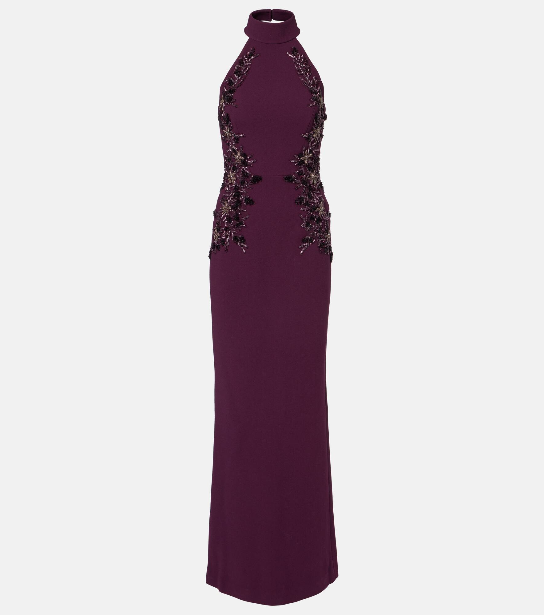 Established as the go-to brand for eye-catching occasionwear, every style from Rebecca Vallance is characterized by glitz and glamour. The Beatrice gown features a halter neckline and bead and crystal embellishments in a delicate floral pattern. Product Details - Material: 98% polyester, 2% elastane - Care instructions: dry clean - Made in China - Designer color name: Blackberry - Item color: purple - Lining: 97% polyester, 3% elastane - Long vent - Closure: concealed zipped back, buttoned back - Item number: P01118484 Size & Fit - True to size - Low back - Fitted - Non-stretchy fabric - slit length 67cm-26.5" - The model seen in the picture is 178cm-5'10" and wearing a size UK 6