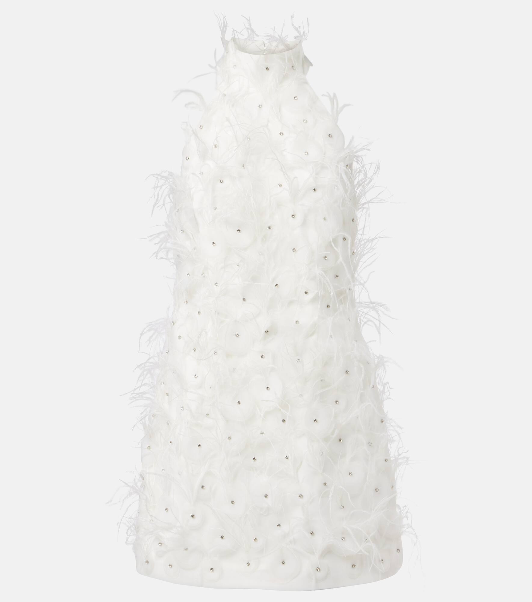 Product Details - Material: 100% polyester - Care instructions: specialist clean - Made in China - Designer color name: Ivory - Item color: white - Details: 100% feathers - Contains non-textile parts of animal origin - Item number: P01039615 Size & Fit - True to size - Low back - Cinched waist - Non-stretchy fabric - The model seen in the picture is 178cm-5'10" and wearing a size UK 6