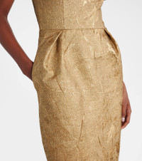 off-shoulder brocade gown