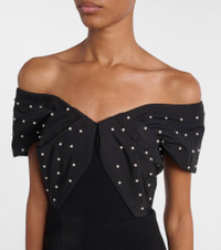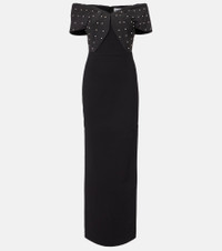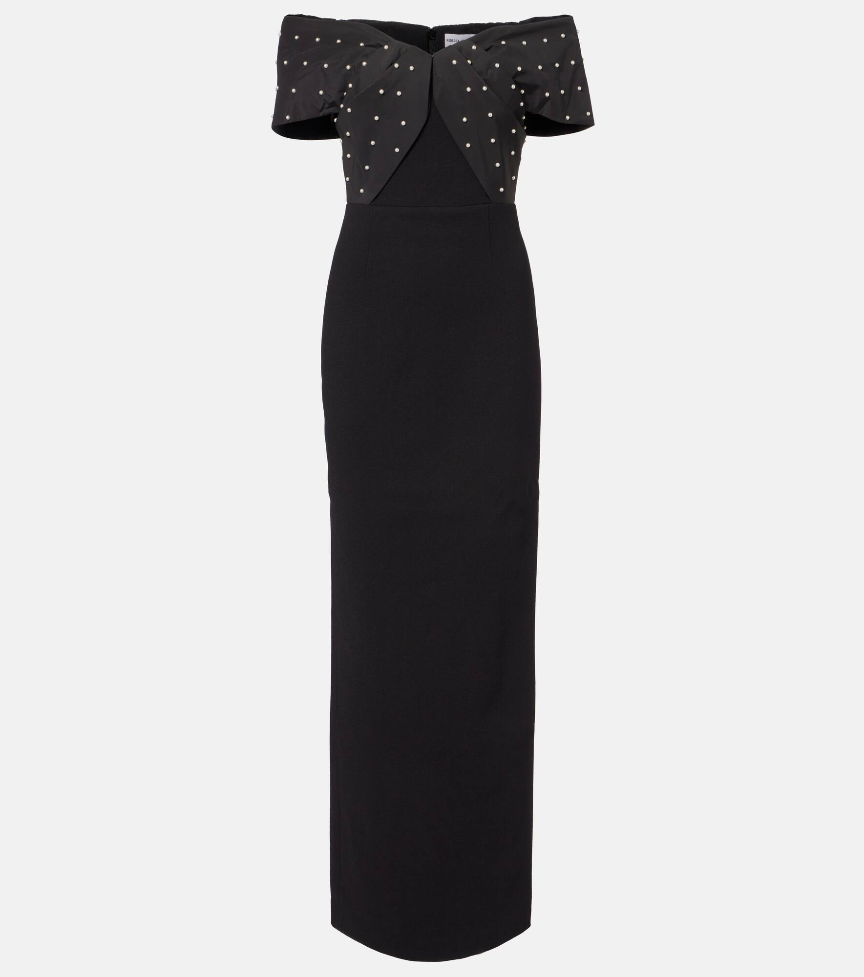 Established as the go-to brand for eye-catching occasionwear, every style from Rebecca Vallance is characterized by glitz and glamour. The Ederson bustier gown features an off-shoulder neckline and a built-in bustier adorned with delicate pearly embellishments. Product Details - Material: 98% polyester, 2% elastane - Care instructions: dry clean - Made in China - Designer color name: Black - Item color: black - Lining: 97% polyester, 3% elastane - Details: 100% polyester - Insert: 100% plastic - Closure: invisible zipper - Built-in bustier - Boning - Long vent - Item number: P01118480 Size & Fit - True to size - Off-the-shoulder - Internal boned corset for support - Fitted - Non-stretchy fabric - slit length 68cm-27" - The model seen in the picture is 178cm-5'10" and wearing a size UK 6