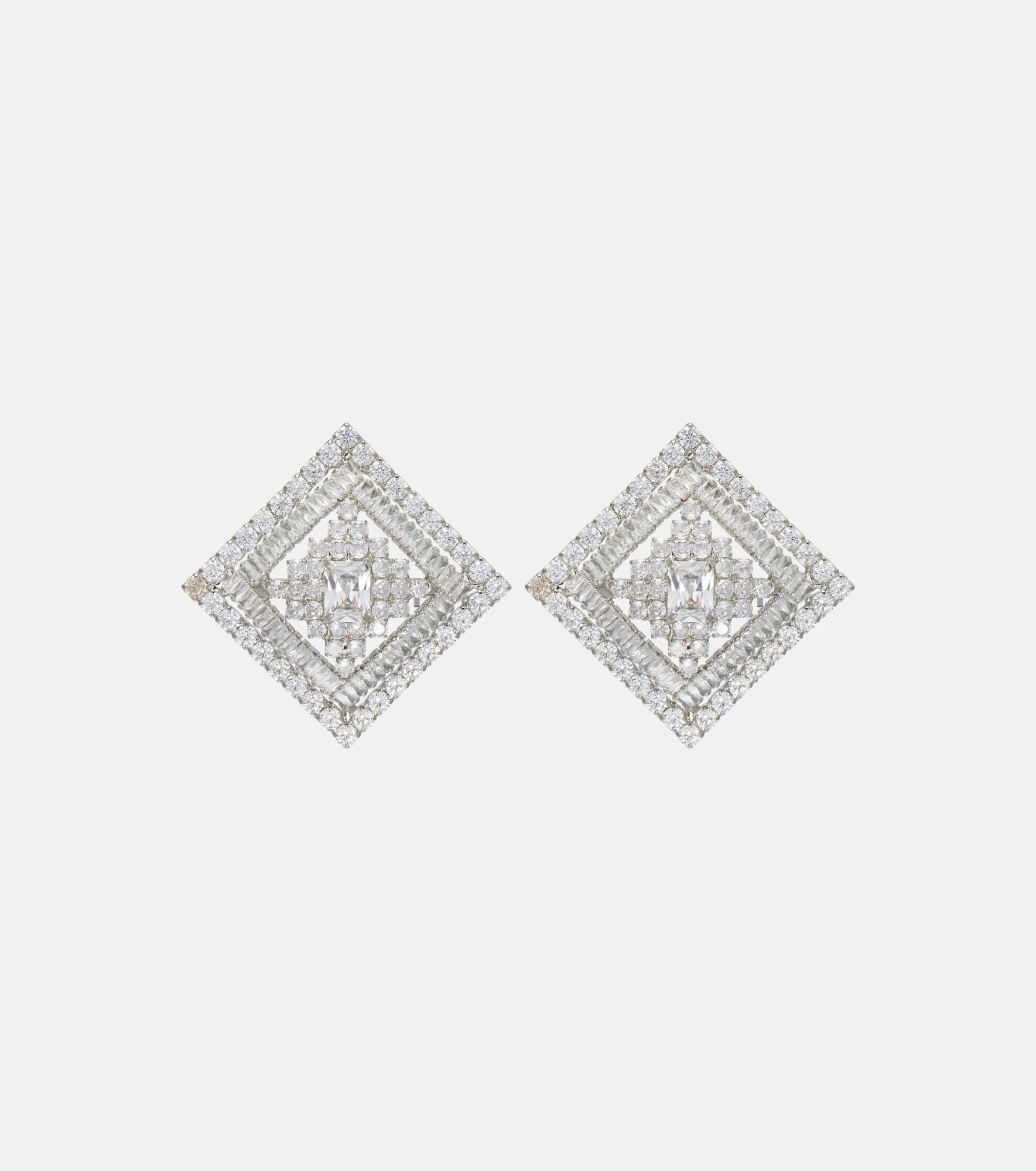Glamour and glitz lie at the heart of Rebecca Vallance's accessories, and these earrings are no exception. The square-shaped design is accented with silver-toned detailing and finished with butterfly-back fastenings. Product Details - Material: brass, cubic zirconia - Made in China - Item color: silver - Includes: box, dust bag - Closure: butterfly-back fastening - Item number: P01106894 Size & Fit - Length 4,5cm-2" - Width 4,5cm-2"