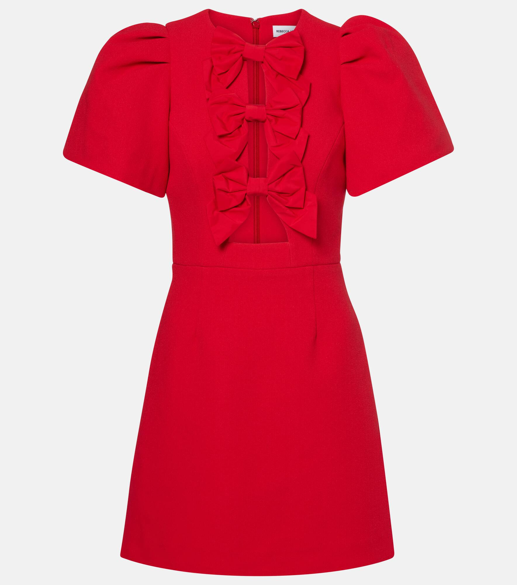 Mark special moments with romantic designs, such as the Kaylee minidress from Rebecca Vallance. This style features puff sleeves for a voluminous effect and bow detailing at the bodice. Product Details - Material: 98% polyester, 2% elastane - Care instructions: dry clean - Made in China - Designer color name: Red - Item color: red - Lining: 97% polyester, 3% elastane - Material II: 100% polyester - Item number: P01078340 Size & Fit - True to size - Oversized shoulders - Cinched waist - Non-stretchy fabric - The model seen in the picture is 178cm-5'10" and wearing a size UK 6
