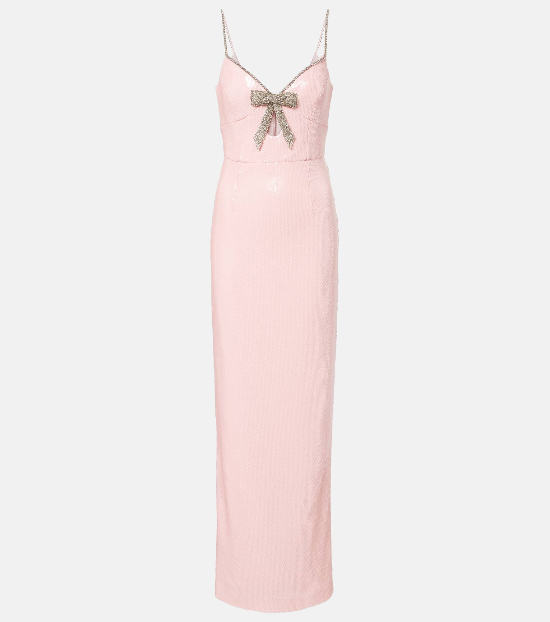 Every style from Rebecca Vallance is characterized by glitz and glamour. The Lena sequined gown features a fitted silhouette with an embellished bow-detail and flattering back slit. Product Details - Material: 95% polyester, 5% elastane - Care instructions: dry clean - Made in China - Designer color name: Soft Pink - Item color: pink - Lining: 95% polyester, 5% elastane - Side slits - Closure: zipped back - Long vent - Item number: P01096323 Size & Fit - True to size - Low back - Fitted - Non-stretchy fabric - slit length 70,0cm-27.5" - The model seen in the picture is 178cm-5'10" and wearing a size UK 6