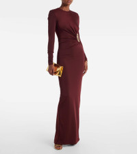Mischa embellished gathered stretch-jersey gown Burgundy