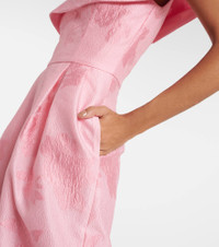 Product Details - Material: 84% polyester, 16% nylon - Care instructions: dry clean - Made in China - Designer color name: Prism Pink - Lining: 97% polyester, 3% elastane - Closure: concealed zipper, button fastening - Item number: P00954478 Size & Fit - True to size - Off-the-shoulder - Cinched waist - Non-stretchy fabric - slit length 69cm-27" - The model seen in the picture is 178cm-5'10" and wearing a size UK 6
