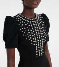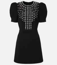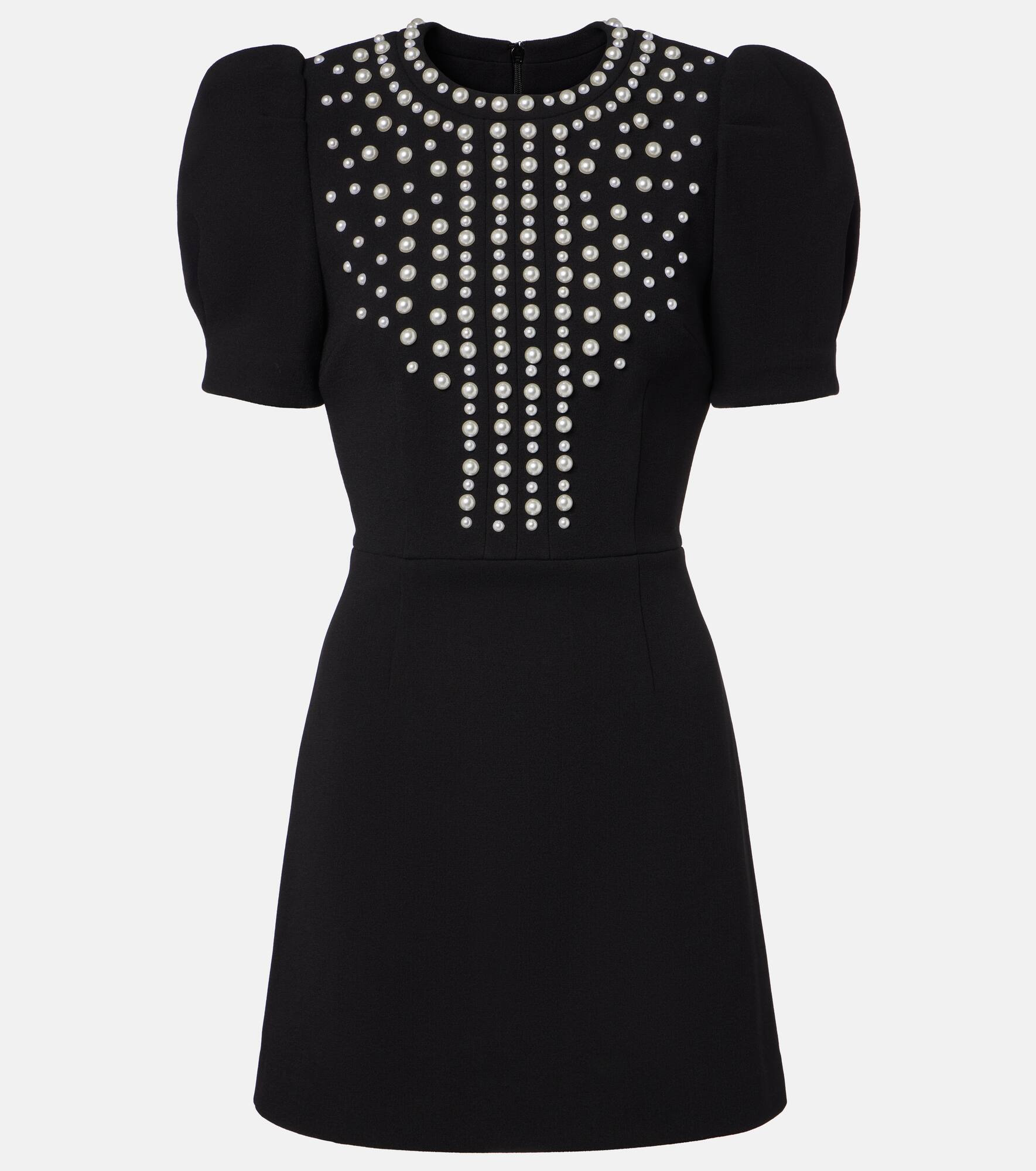 puff-sleeve pearl-embellished mini dress