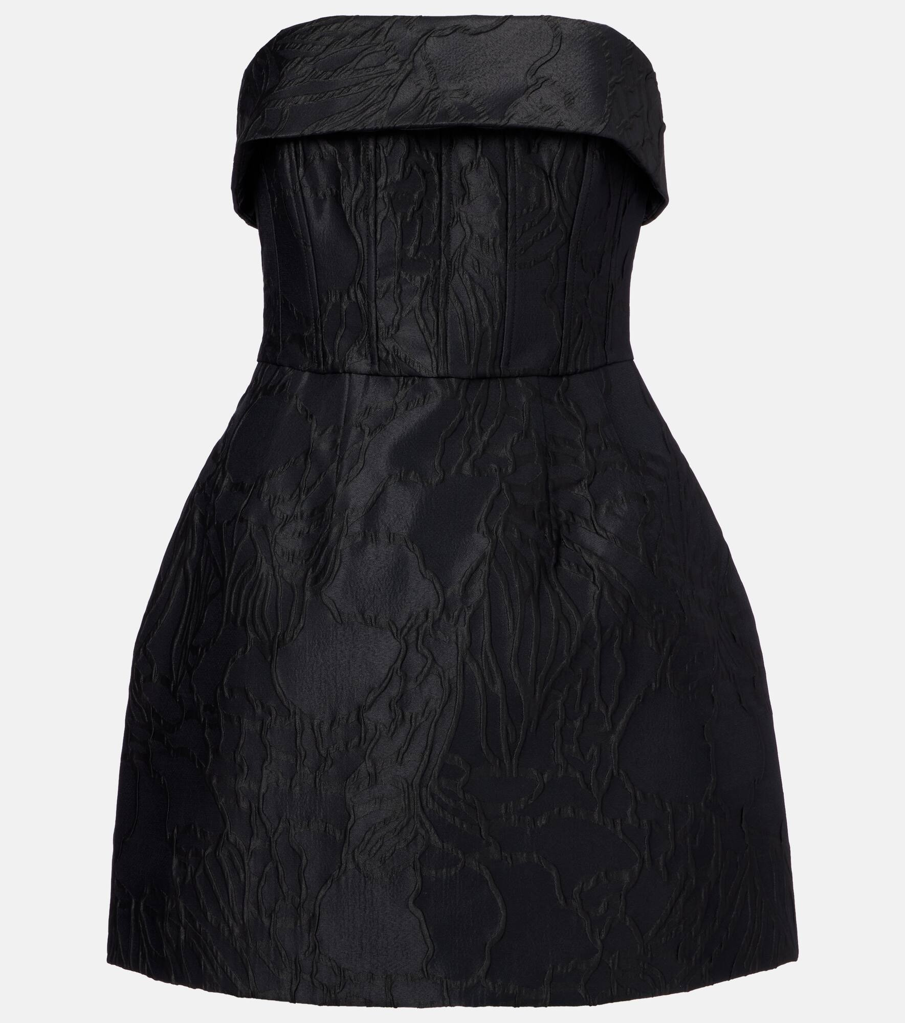 The Petra minidress from Rebecca Vallance creates a tailored elegance for glamorous events. Finished with a jacquard motif, its design features a cinched waist, and the strapless bodice is complete with a cuff and a paneled pattern. Product Details - Material: 80% polyester, 11% silk, 9% nylon - Care instructions: dry clean - Made in China - Designer color name: Black - Item color: black - Lining: 97% polyester, 3% elastane - Lining II: 100% nylon - Material II: 92% polyester, 8% elastane - Hook-fastening built-in bustier - Item number: P01078343 Size & Fit - True to size - Strapless - Internal laced corset for support - Cinched waist - Non-stretchy fabric - The model seen in the picture is 178cm-5'10" and wearing a size UK 6