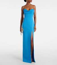 The Skyla gown from Rebecca Vallance exudes elegance with a strapless sweetheart neckline and delicate cowl detail. The floor-length silhouette features a corseted waist and a sleek column skirt with a high front slit. Product Details - Material: 98% polyester, 2% elastane - Care instructions: dry clean - Made in China - Designer color name: Bright Blue - Item color: blue - Lining: 97% polyester, 3% elastane - Closure: zipped back - Boning - Long vent - Fully lined - Item number: P01078204 Size & Fit - Fits small to size - we recommend trying one size larger - Strapless - Internal boned corset for support - Cinched waist - Non-stretchy fabric - The model seen in the picture is 178cm-5'10" and wearing a size UK 8