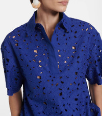 Product Details - Material: 100% cotton - Care instructions: dry clean - Made in China - Designer color name: Blue - Item color: blue - Closure: half-buttoned front - Item number: P01042181 Size & Fit - True to size - Dropped shoulders - Designed for a loose fit - Non-stretchy fabric - Falls below the hip - The model seen in the picture is 178cm-5'10" and wearing a size UK 6