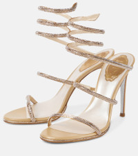 Rene Caovilla’s Cleo sandals have been a style icon since 1975 – so much so that they've even been exhibited at the MoMA. They're handmade in Italy from beige leather and feature the house's signature bombè coil straps, which are hand-embellished with crystals using a heat sealing technique that is unique to the brand. Product Details - Toe shape: round open toe - Lining: leather - Upper: fabric - Sole: leather insole and sole - Closure: ankle strap - Designer color name: Beige Satin/ C Golden Shadow S - Made in Italy - Item number: P00630758 Size & Fit - Fits slightly small to size - we recommend trying a half size larger - European sizes - 10,5cm-4" heel (size EU 38)