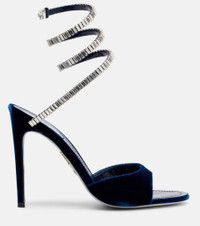 You’ll find myriad reasons to slip on a shimmering Rene Caovilla design well beyond cocktail hour. Italian-crafted from velvet, the Spark sandals are set on 105mm stiletto heels and feature sparkling crystal embellishments. Product Details - Upper: fabric - Lining: leather - Sole: leather insole and sole - Toe shape: almond open toe - Made in Italy - Includes: dust bag, shoe box - Designer color name: Dark Blue/Crystal Strass - Item color: blue - Details: crystals - Item number: P01100787 Size & Fit - True to size - European sizes - 10,5cm-4" heel (size EU 38)