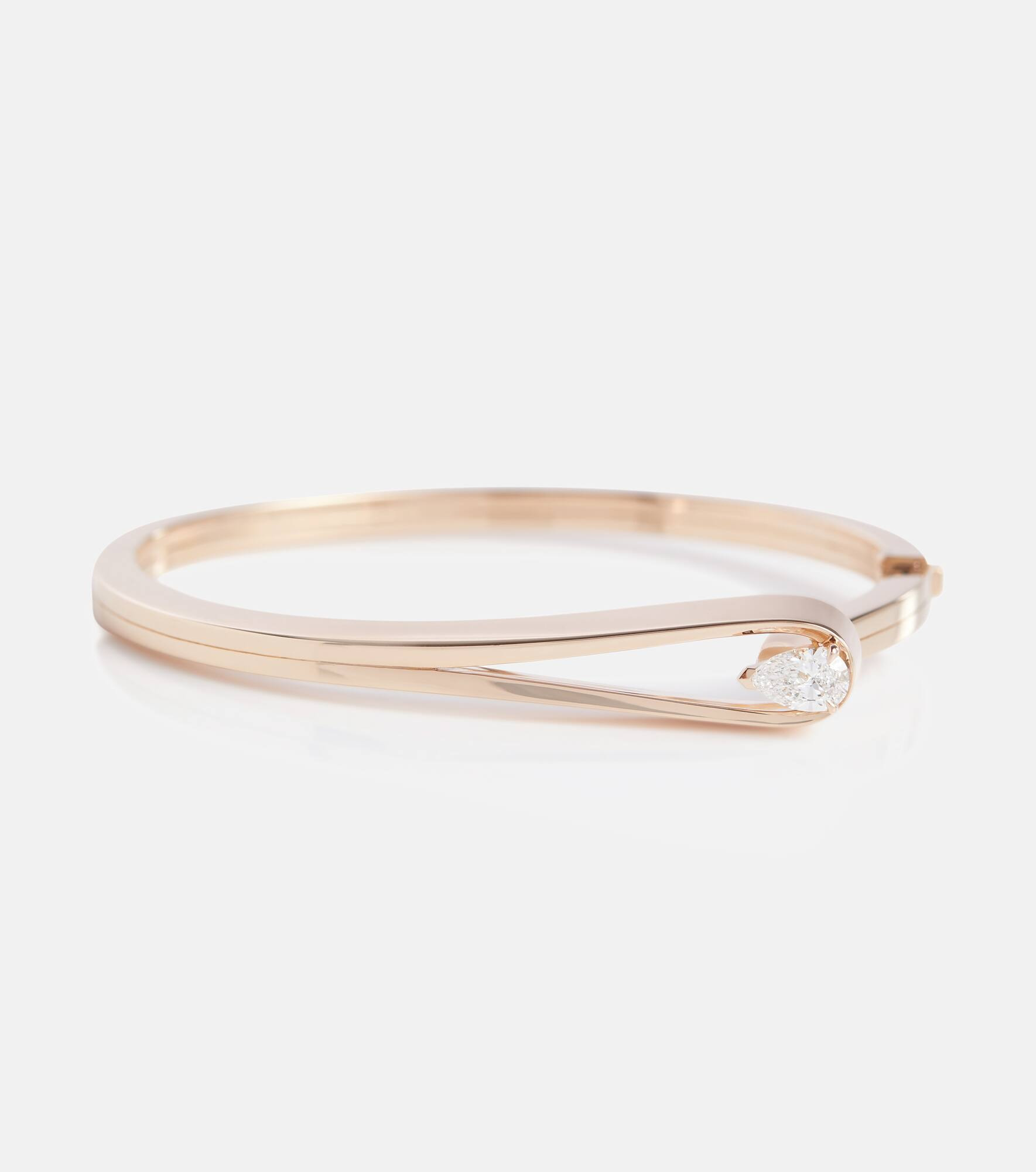 Mark the next momentous occasion in your life or that of a loved one with this bracelet from Repossi's Serti Inverse collection. Made from 18kt rose gold, the delicate design secures with a hinge fastening and is accented by a brilliant 0.515ct diamond. Highlight its sheen against a classic LBD. Product Details - Material: 18kt rose gold - Stone I: diamond, pear-shaped - Made in Italy - Designer color name: Pink Gold - Item number: P00515158 Size & Fit - Max. width 8mm-0.3"