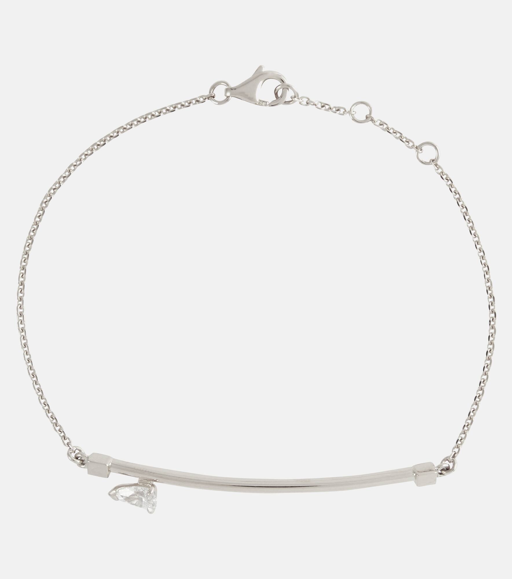 This contemporary 18kt white gold bracelet is part of Repossi's Serti Sur Vide collection and comes adorned with a 0.25ct pear-shaped diamond. Made in Italy from a delicate circle chain, this piece has a lobster clasp fastening and adjustable length. Product Details - Material: 18kt white gold - Stone I: diamond, pear-shaped - Closure: lobster-clasp fastening - Made in Italy - Designer color name: White Gold - Item number: P00627378 Size & Fit - Adjustable length - Min. width 1mm-0.05" - Max. width 5mm-0.2" - Max. circumference 16,5cm-6.5"