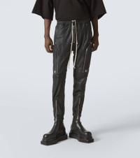 Product Details - Material: 100% leather - Care instructions: specialist clean - Made in Italy - Designer color name: Black - Pocket lining: 100% leather - Lining: 94% cupro, 6% elastane - Pockets: side slit pockets, zipped pockets - Closure: zipper fastening, drawstring - Item number: P01001446 Size & Fit - Fits small to size - we recommend trying one size larger - Elasticated waist - Adjustable at the waist - Non-stretchy fabric - Tapered leg - The model seen in the picture is 178cm-5'10" and wearing a size 52 - Height of model is 192cm-75.5" and wears a size 50