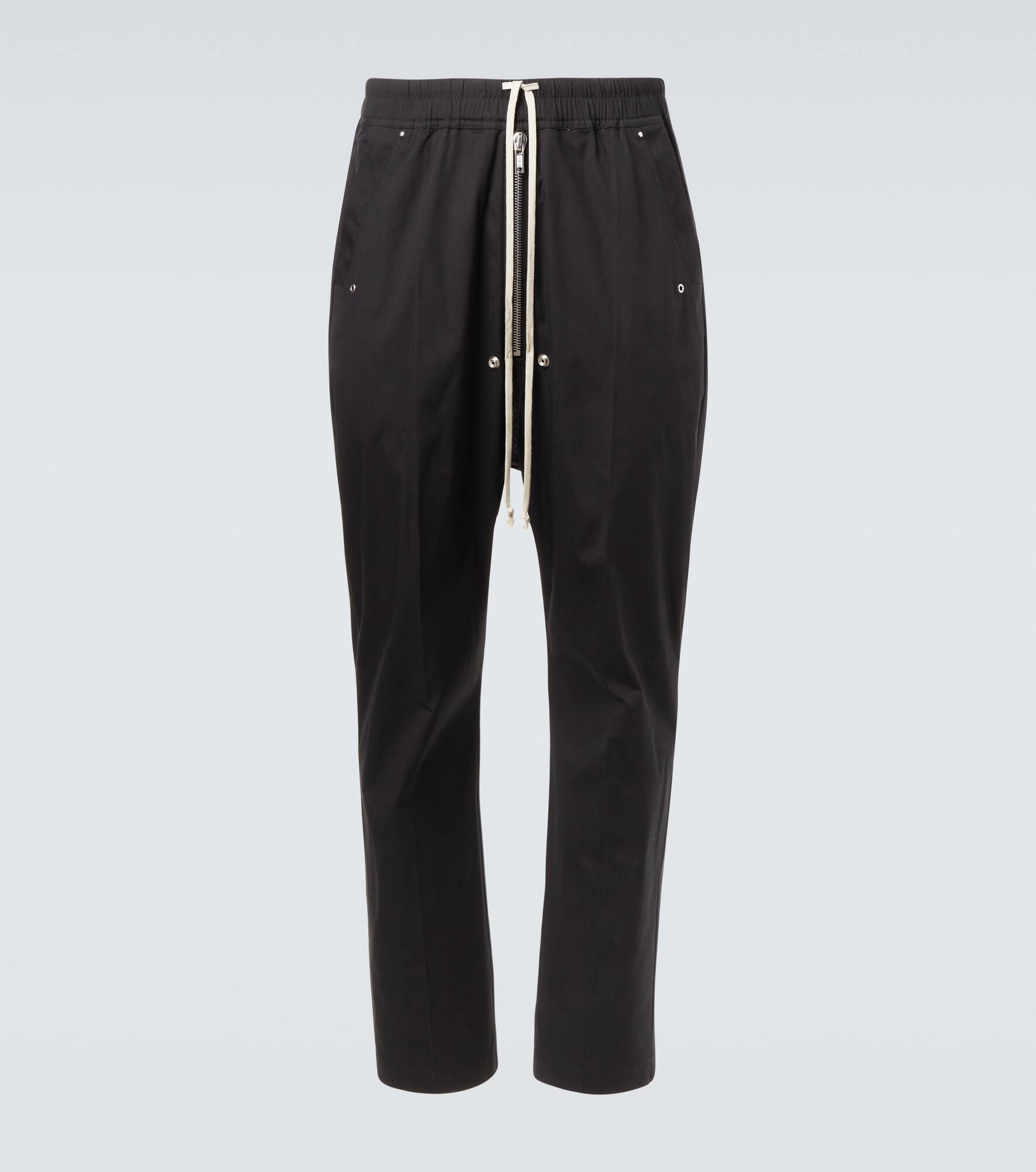 Crafted from a cotton-blend, the Bela wide-leg pants from Rick Owens showcase an exposed front zipper. This design features eyelet and rivet details at its side pockets and a drawstring at the waist. Product Details - Material: 97% cotton, 3% elastane - Care instructions: hand wash - Made in Moldova - Designer color name: Black - Item color: black - Elasticated drawstring waist - Item number: P01036815 Size & Fit - True to size - Elasticated waist - Adjustable at the waist - Non-stretchy fabric - Straight leg - High-rise - Low inseam - The model in the picture is 185cm-6'1" and wearing a size 52