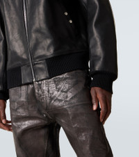 Aptly nicknamed The Lord of Darkness, Rick Owens brings gothic and industrial inspiration to avant-garde design. The Blixa Dracucollar jacket is crafted from leather with a blouson-inspired silhouette. Product Details - Material: 100% calf leather - Care instructions: specialist clean - Made in Moldova - Designer color name: Black - Item color: black - Lining: 100% cotton - Sleeve lining: 100% cupro - Trim: 94% wool, 5% polyamide, 1% elastane - Filling: 100% polyester - Hardware color: silver - Closure: zipped front - Pockets: snap-buttoned pockets, internal pockets - Cuff: ribbed - Hem: ribbed - Item number: P01057197 Size & Fit - True to size - Designed for a loose fit - Elasticated hem - Non-stretchy fabric - Falls to the hip - The model in the picture is 185cm-6'1" and wearing a size IT 52