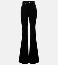Aptly nicknamed The Lord of Darkness, Rick Owens brings gothic and industrial inspiration to avant-garde design. The Bolan flared pants are crafted from cotton and linen corduroy and boast a high-rise waist. Product Details - Material: 74% cotton, 26% linen - Care instructions: hand wash - Made in Italy - Designer color name: Black - Item color: black - Closure: zipper fly, button fastening - Pockets: five pockets - Belt loops - Item number: P01075810 Size & Fit - Fits small to size - we recommend trying one size larger - Sizing adapted to taller women - Non-stretchy fabric - Slim-leg with a flared hem - High-waisted - The model seen in the picture is 178cm-5'10" and wearing a size 27