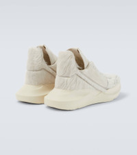 These calf hair sneakers from Rick Owens combine bold texture with refined craftsmanship. Made in Italy, the pair showcases a unique, tactile surface and blunt square toes. Product Details - Upper: calf hair - Lining: leather - Sole: leather insole, rubber sole - Toe shape: square toe - Made in Italy - Includes: shoe box - Designer color name: Indigo/Milk/Milk - Item color: white - Closure: lace-up - Item number: P01057218 Size & Fit - True to size - Half sizes please take the next size up - European sizes