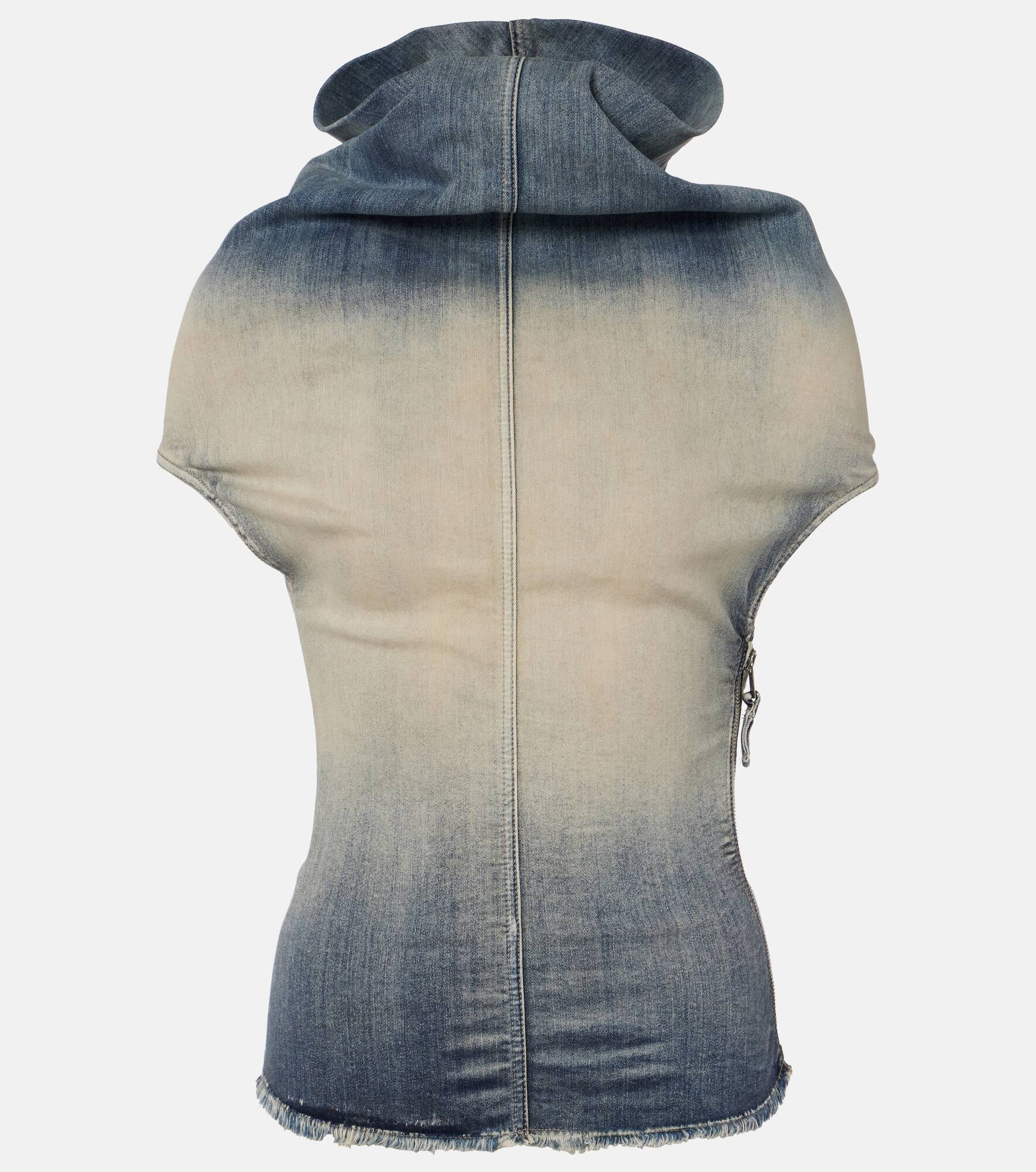 Aptly nicknamed The Lord of Darkness, Rick Owens brings gothic and industrial inspiration to avant-garde design. This denim top features a zipped side and comes with a draped design and a vintage-washed finish. Product Details - Material: 91% cotton, 6% elastomultiester, 3% rubber - Care instructions: hand wash - Made in Italy - Designer color name: Hustler Degrade - Item color: blue - Closure: zipped side - Item number: P01068274 Size & Fit - True to size - Fitted - Slightly stretchy fabric - Slightly cropped - The model seen in the picture is 178cm-5'10" and wearing a size IT 40