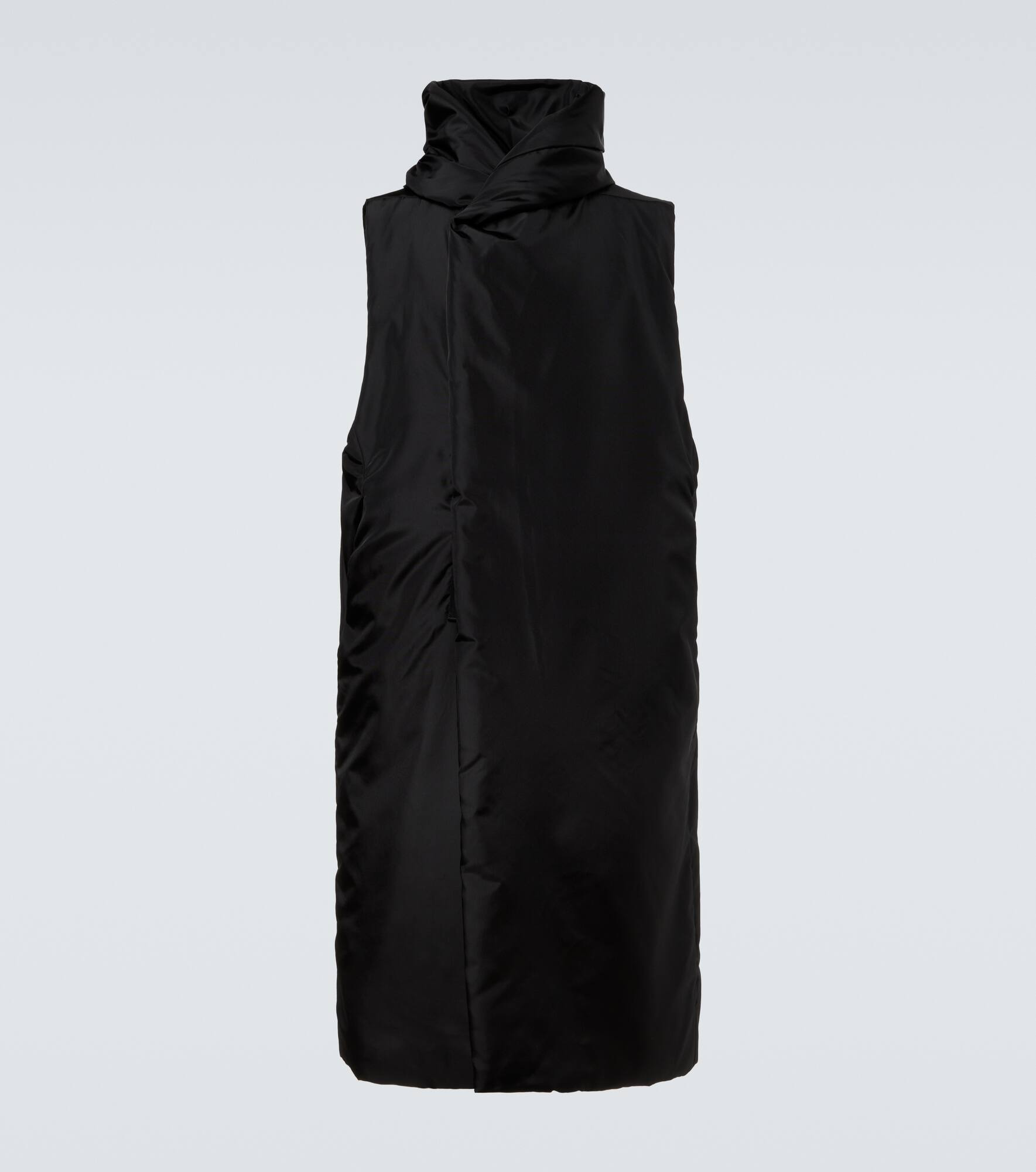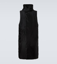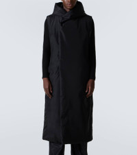 This vest from Rick Owens' DRKSHDW collection showcases a distinctive technical canvas construction. Defined by a knee-length silhouette, the design is fitted with a hood, side pockets, and internal quilting for warmth and comfort. Product Details - Material: 100% polyamide - Care instructions: dry clean - Made in Moldova - Designer color name: Black - Item color: black - Pocket lining: 100% cotton - Filling: 100% polyester - Closure: buttoned front - Hood - Pockets: snap-buttoned pockets, internal pocket - Item number: P01057250 Size & Fit - Fits large to size - we recommend trying one size smaller - Designed for a loose fit - Non-stretchy fabric - Falls below the hip - The model in the picture is 185cm-6'1" and wearing a size M